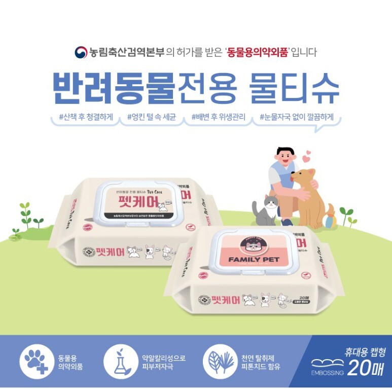 반려동물 전용 펫티슈라 안심하고 사용할 수 있어요.